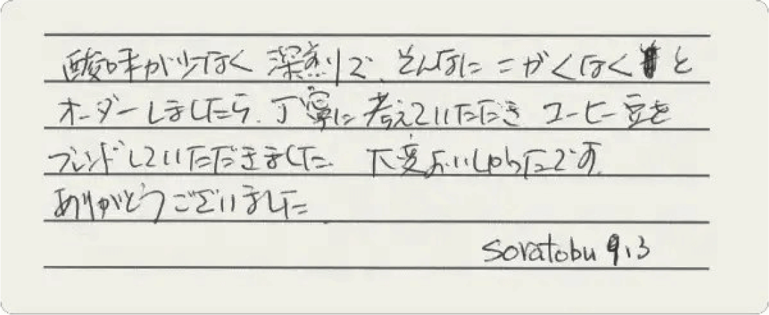 これは「本物の一杯をまず体験してほしい」という、焙煎士・山下のこだわりです。